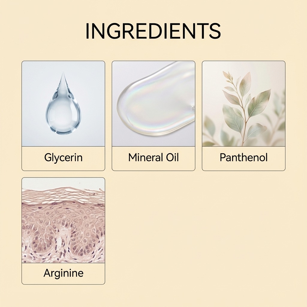 Ingredients: water, mineral oil, glycerol, glycerol stearate, 1,2- hexanediol, carbomer, arginine, panthenol.